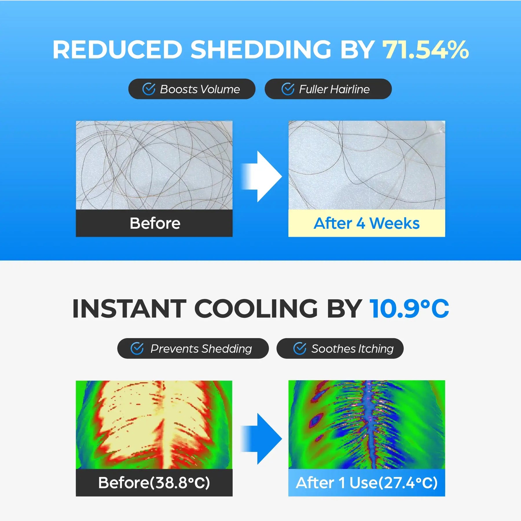 • Sofortige Linderung: L-Menthol kühlt die Kopfhaut um 11,2 °C – beruhigt Reizungen und Entzündungen.