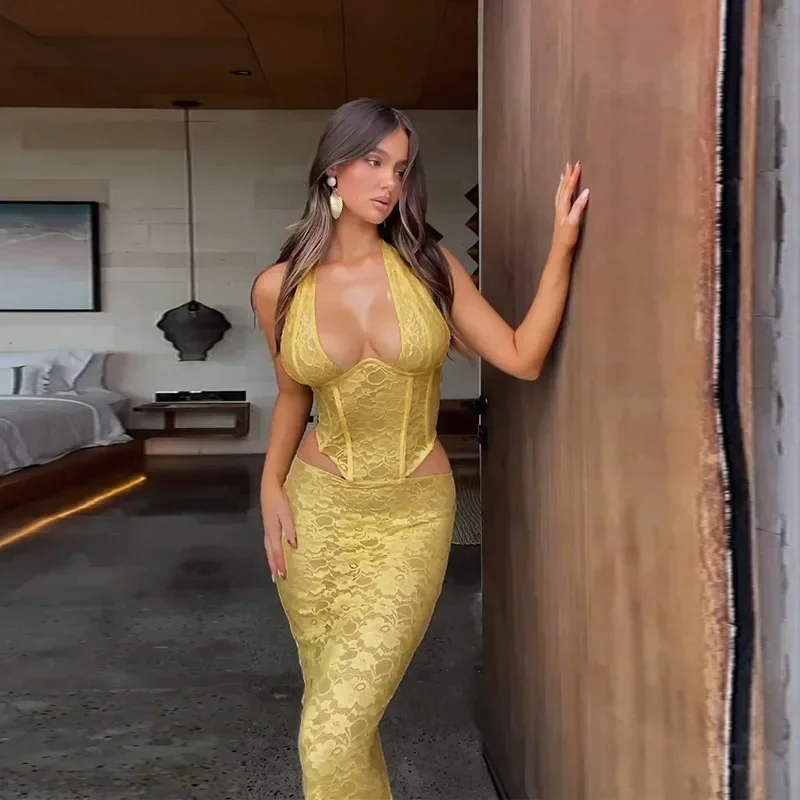 Ein atemberaubendes Zusammenspiel aus Eleganz, Selbstvertrauen und moderner Verführung. Das strukturierte Korsett, feine Spitze und die fließende Silhouette schaffen eine sinnlich-raffinierte Ausstrahlung für besondere Anlässe.