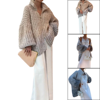 Damen Strickjacke mit Reißverschluss | Rundhals | Baumwolle | Größen S–5XL