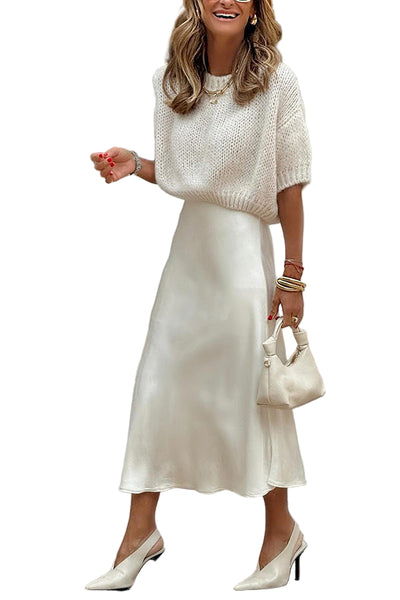 Damen Strickbluse | Schlanker Schnitt | Kurze Ärmel | Einfarbig | Pullover-Stil | Weiß S-XL