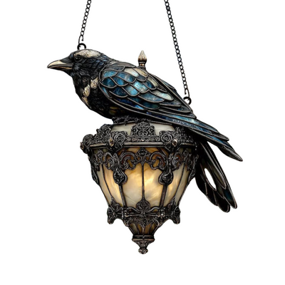 Halloween-Dekoration mit Krähen-Design | Handbemalte Details | Vintage-Eisen & Bernsteinglas | Für Innenbereich & überdachten Außenbereich