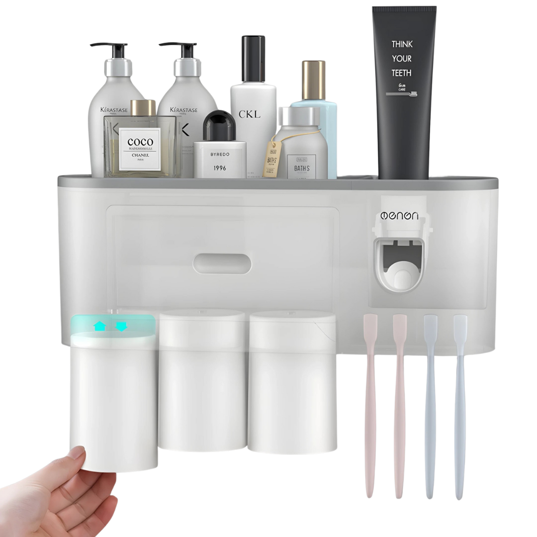 • ✔️ Multifunktionale Organisation: Zahnbürstenhalter, Zahnpastaspender, Becher und mehr – alles in einem.