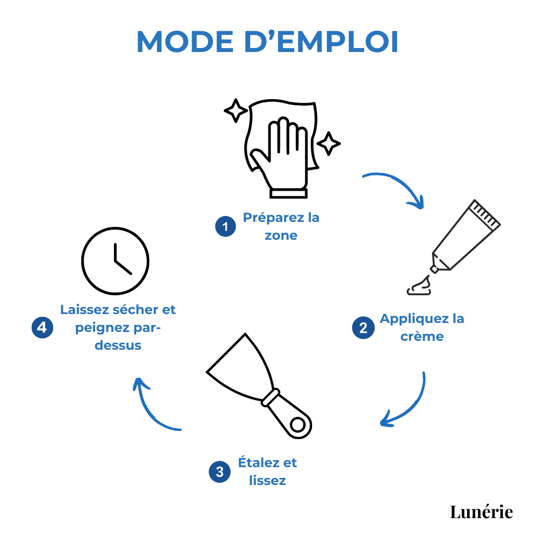 Keine komplizierten Werkzeuge oder DIY-Erfahrung notwendig! Einfach drücken, verstreichen und glätten. Mit nur wenigen Handgriffen sieht Ihre Wand wieder aus wie neu.