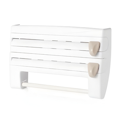 Küchen Wandregal mit Folienspender & Rollenhalter | 3-in-1 Organizer | Gewürzablage & Cutter-System