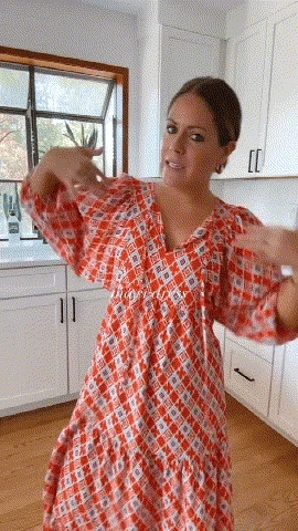 Der tiefe V-Ausschnitt schmeichelt Ihrer Figur und betont die Taille, während der A-Linien-Schnitt mit Rüschen am Saum sanft um Ihre Beine fällt. Die leuchtenden Blumenmuster, die Puffärmel und die lockere Passform machen dieses Kleid zum idealen Begleiter für den Alltag – ob im Urlaub, bei einem Stadtbummel oder bei einem entspannten Treffen mit Freunden.