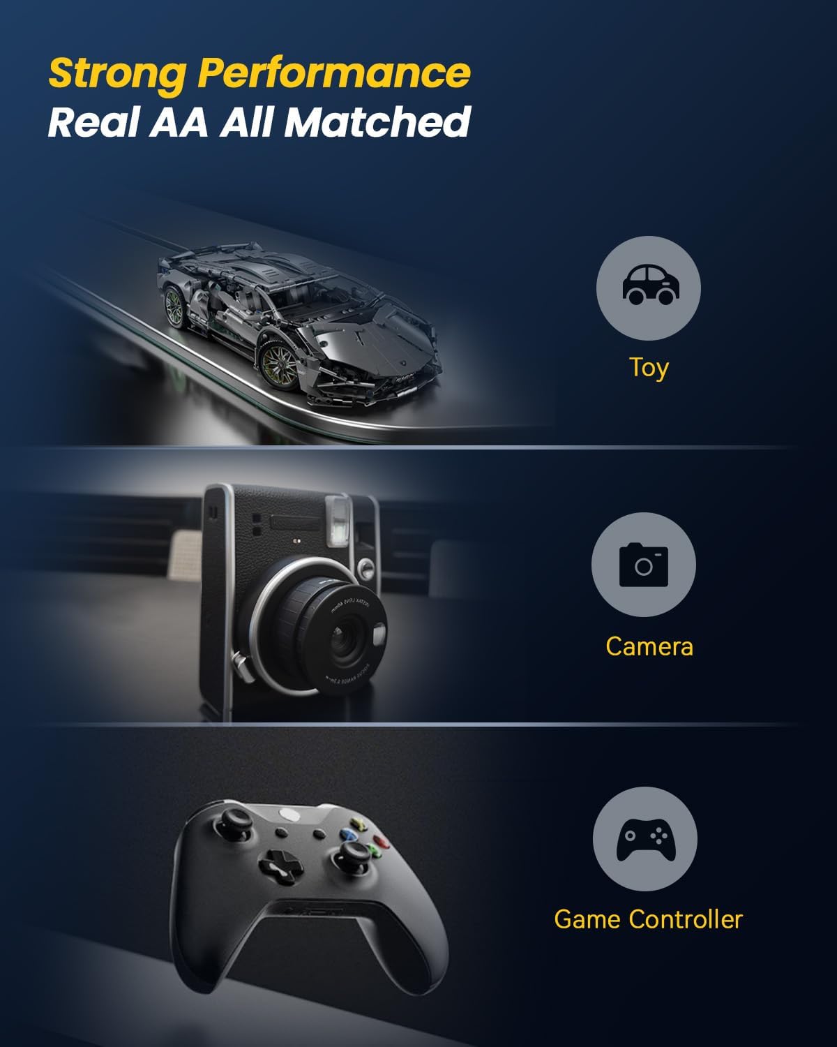 【Intelligentes LED-Display】 - Das LED-Licht zeigt den Ladestatus an. Blinkendes Grün bedeutet Ladevorgang, durchgehend Grün bedeutet vollständig geladen, Rot zeigt einen Batterie- oder Temperaturfehler an. Alle AA/AAA-Akkus können innerhalb von 2,5 Stunden bei dauerhaft grünem Status vollständig geladen werden.