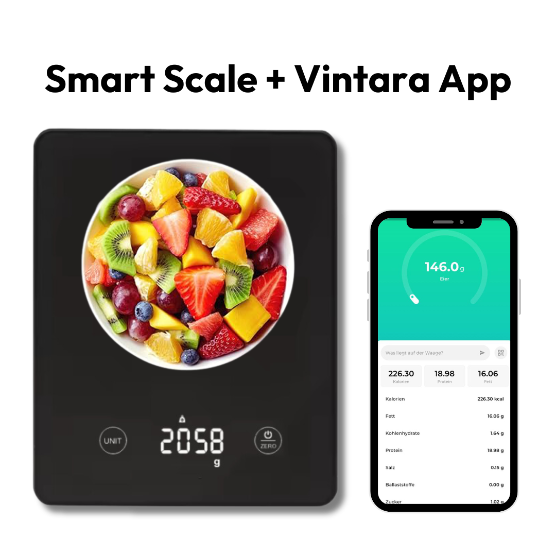 Legen Sie eine beliebige Zutat auf die Waage, und lassen Sie sich sofort die Kalorien und Nährstoffe in der verbundenen App anzeigen! Diese intelligente Waage liefert Ihnen Echtzeitdaten und hilft Ihnen, Ihre Nahrungsaufnahme präzise zu steuern.